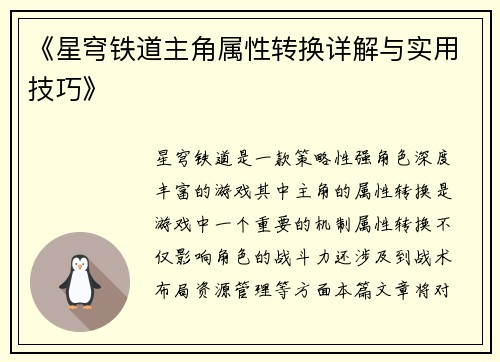《星穹铁道主角属性转换详解与实用技巧》