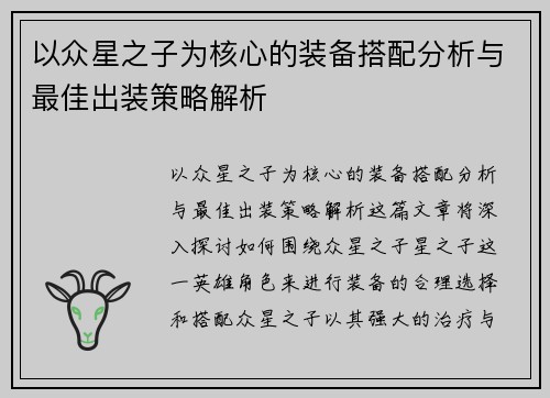 以众星之子为核心的装备搭配分析与最佳出装策略解析